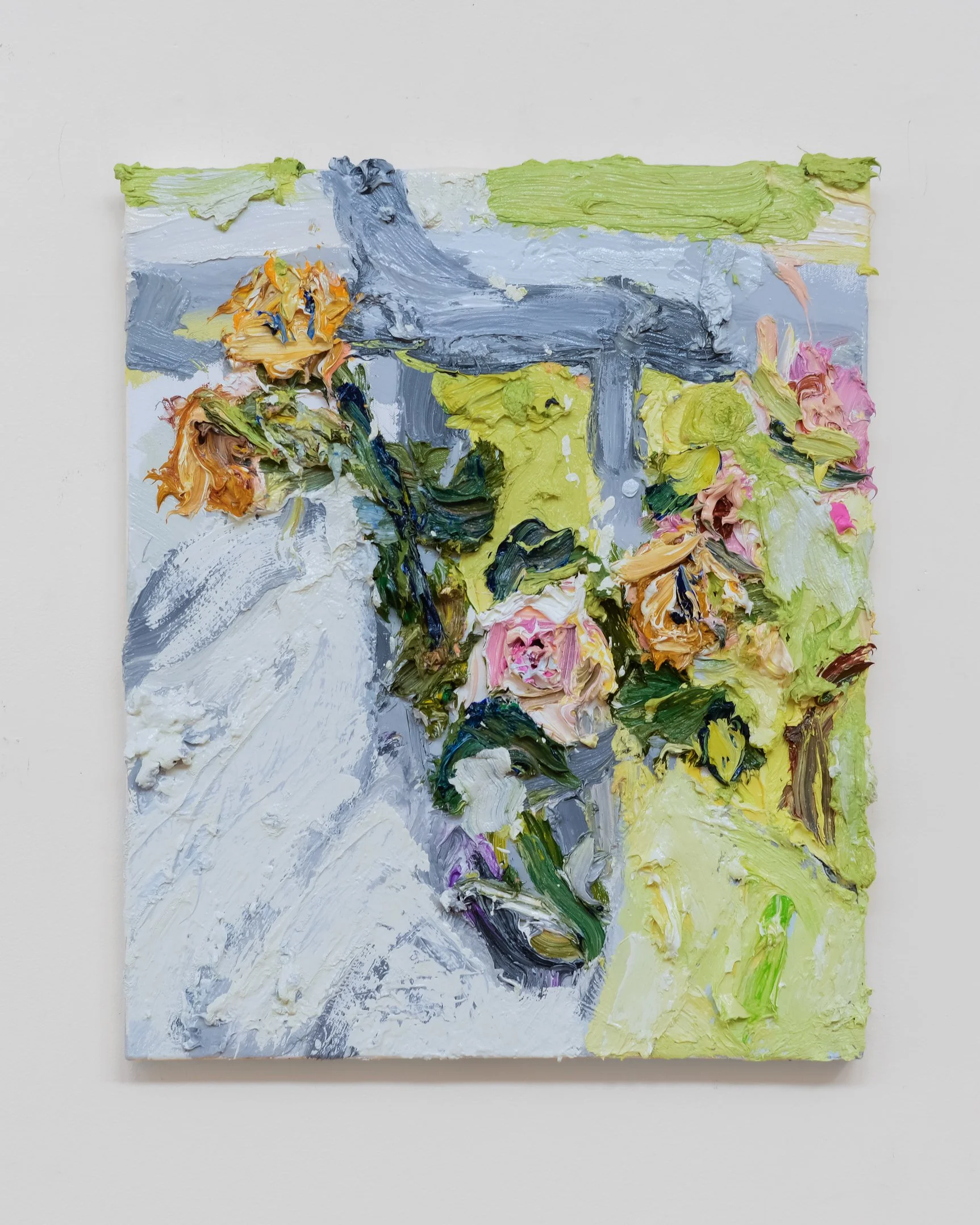 oil, acrylic, charcoal, spray paint, collage on canvas, 61 x 77 cm, available